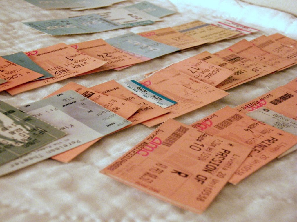 For a while now, basically since college, I’ve kept my ticket stubs when I go to movies and shows. I’ve tossed them into a little box in a drawer, thinking someday I’d do something with them.